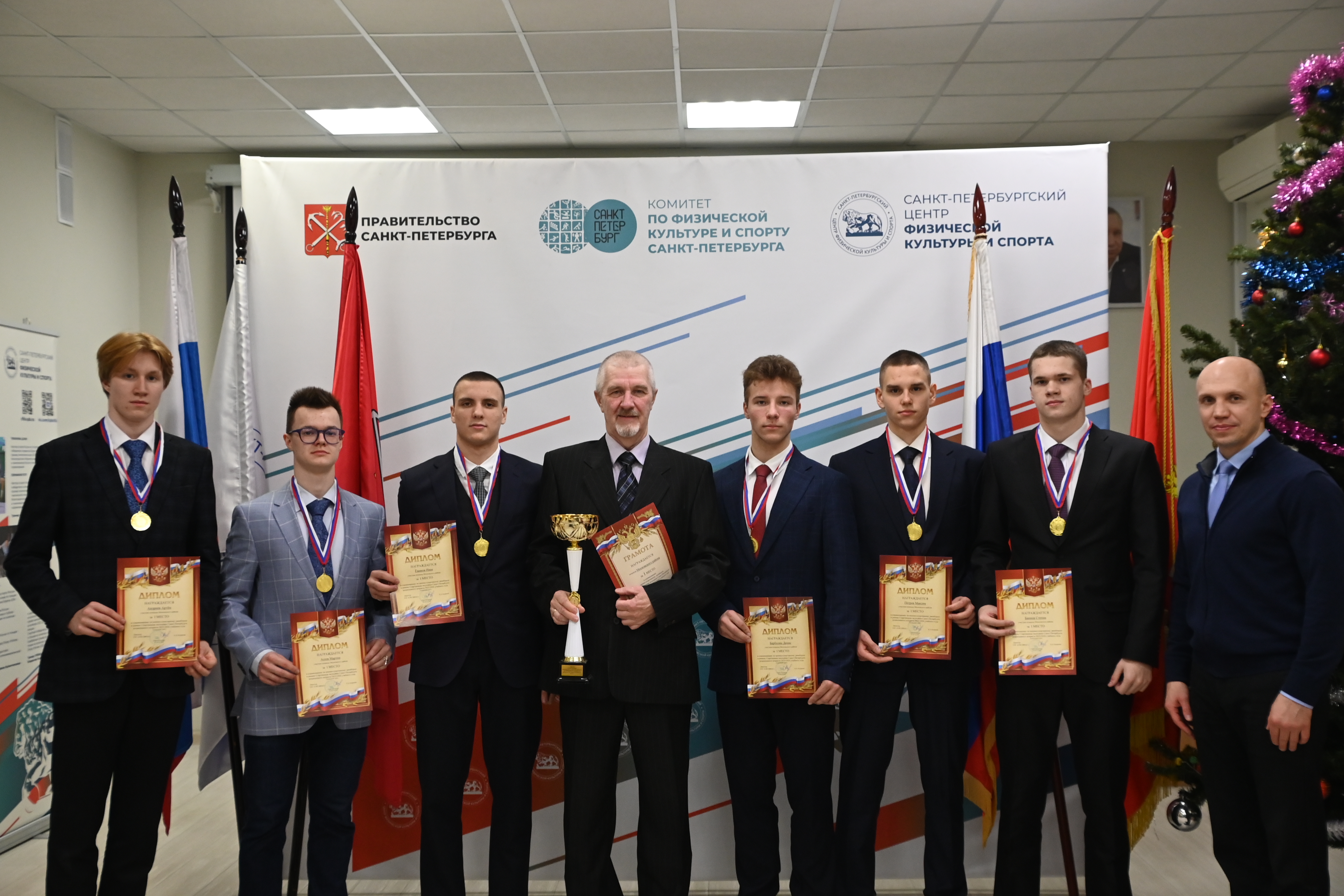 19.12.2025 г. в ГБУ ЦФКС Санкт-Петербурга прошла торжественная церемония награждения спортсменов сборной команды Московского района, победителей и призёров трёх этапов соревнований по военно-спортивному многоборью Спартакиады допризывной молодежи 2025-26 учебного года. На первом этапе спортсменыГБУ ДЮЦ ЦФКСЗ Московского района Санкт-Петербурга: Андреев Артём, Асеев Мартин, Баннов Степан, Барболин Денис, Ежиков Иван, Ерошков Леонид за 1 место в командном первенстве были награждены Кубком, медалями и грамотами. В личном первенствеБарболин Денис за 1 место и Ерошков Леонид за 2 место были награждены медалями и грамотами. На втором этапе спортсмены центра: Андреев Артём, Асеев Андрей, Баннов Степан, Барболин Денис, Ежиков Иван, Петров Максим вновь в командном первенстве заняли 1 место и были награждены Кубком, медалями и грамотами. На третьем этапе спортсмены центра: Анкудинов Денис, Асеев Андрей, Баннов Степан, Горлинский Сергей, Ежиков Иван, Екимов Константин заняли 2 место в командном первенстве и были награждены Кубком, медалями и грамотами. В личном первенстве Екимов Константин за 3 место был награжден медалью и грамотой. Поздравляем всех участников команды с отличным выступлением на Спартакиаде! В 2026 году будут проведенызаключительные три этапа соревнований по военно-спортивному и военно-прикладному многоборью. Пожелаем всем достойного выступления и побед!